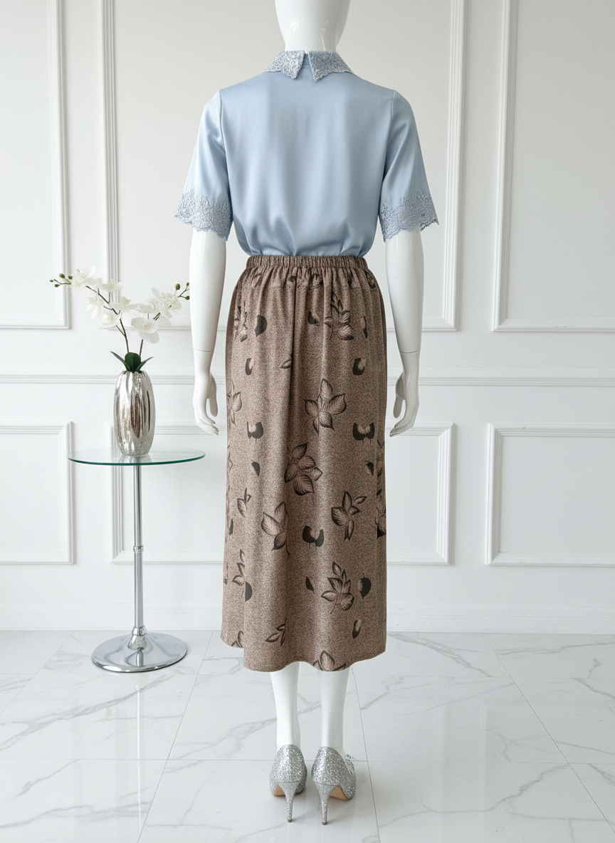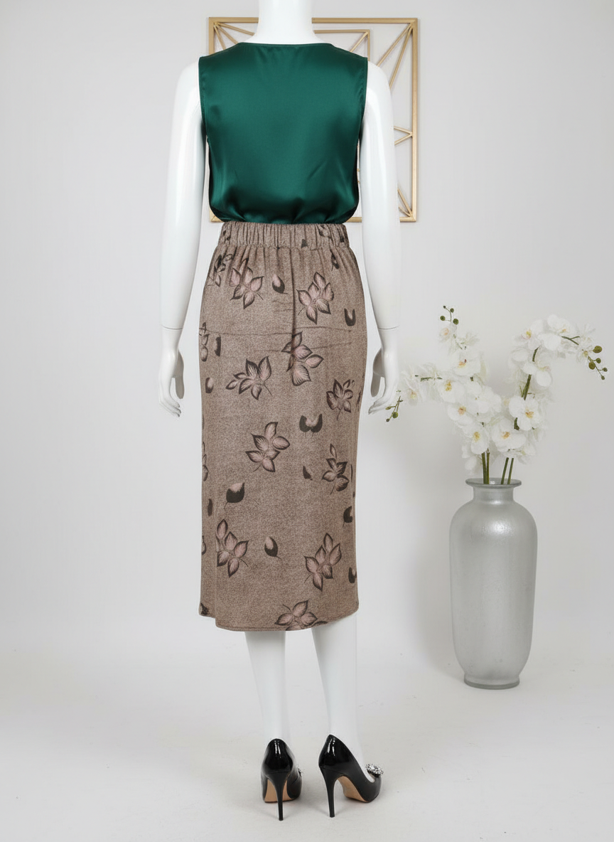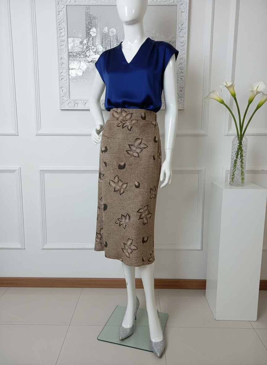 جنس دامن مخمل استرج کشی طرحدار هست پارچه بسیار مرغوب وگرم بالا هست قد دامن 80هست وقد میدی،قد دامن حدودا تا وسط ساق پا هست. فری سایز کمر کش وخود پارچه هم کش میاد پشت دامن وکمر چین خورده مجلسی